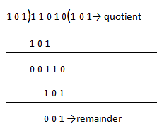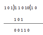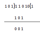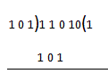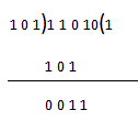 在第一步中,考虑股息的最左位,并且根据值乘以1的值,并且写入101和1的结果。