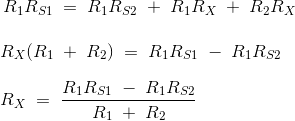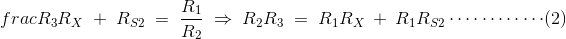 如果开关S位于位置2,则我们再次需要调整可变电阻R以平衡桥接电路。让我们假设新的r值为rS2。在这个位置,表达式如下;