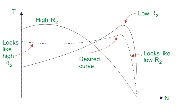 NS.是同步定子通量的RPS速度,S是转子速度的滑动。上述速度扭矩曲线图表明,较高值的电阻在静止状态下提供更高的扭矩,并且在更高的值滑动中将实现最大扭矩。