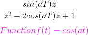 这个函数的拉普拉斯变换是a/(s2+ A.2),对应的f(k) = sin(akT)。这个函数的z变换是