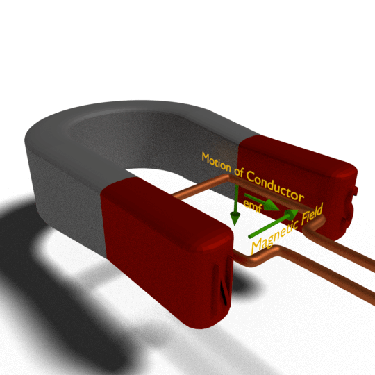 当一个导体在A中移动磁场,EMF在导体上诱导。这是每个旋转的唯一基础发电机作品(如便携式发电机)。