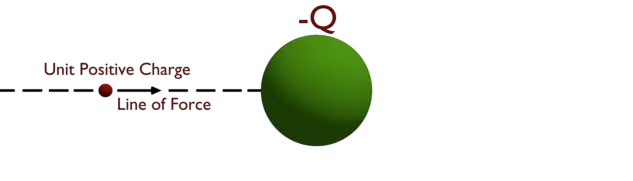 我们取一个负电荷- Q库仑。同样,我们在电荷场Q的一点上放置一个单位正电荷。