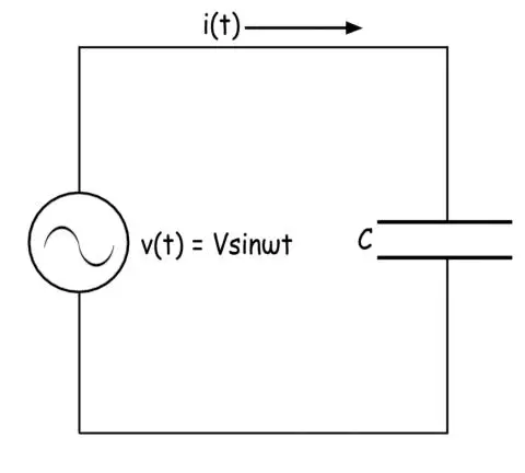 现在让我们在纯粹的情况下施加相同的正弦电压vsinωt电容器电容C Farad。