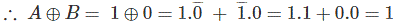 因此证明了A⊕B的布尔表达式为AB̅+ ĀB,因为这个布尔表达式满足关于an的所有输出状态XOR门的输入条件.