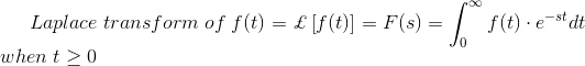 - 将本产品W.R.T的时间集成为零和无穷大的限制。该集成导致Laplace变换F(t),其由f(s)表示。
