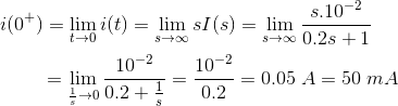 通过应用初始值定理,我们得到,