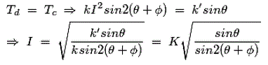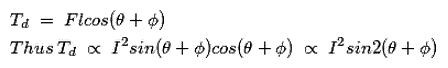 设没有电流通过线圈时,指针为零,铁盘的轴线与垂直于磁场的线的夹角为φ。现在由于电流I和相应的磁场强度,铁片偏转到一个角θ。H在缺陷铁盘轴方向上的分量为Hcos{90 - (θ + φ)或Hsin (θ + φ)。作用在圆盘上的力F向内作用于线圈,因此与H成正比2sin(θ + φ)因此力也与I成正比2SIN(θ+φ)用于恒定渗透性。如果该力在距离枢轴的距离L上作用在盘上,则偏转扭矩,