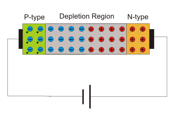 需要注意的是,反向偏压耗尽层完成后,由于势垒的反对,载流子(电子和空穴)不再通过结电压它的值和势垒相等。