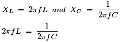 对于具有一定频率的串联RLC电路,称为谐振频率,必须记住以下几点。所以在共振: