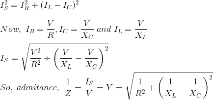如上所示的阻抗方程中,Z为并联RLC电路;每个元件都有阻抗的倒数(1 / Z)即。导纳所以在并联RLC电路中,用导纳代替阻抗是很方便的。