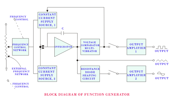 功能发生器包含一个名为电子的电子设备振荡器这产生了简单的重复波形,例如正弦波,方波,三角波形和锯齿波形式。在现代设备中,这些波形是由数字信号处理技术创建的,然后是较低频率的类似信号,因此通常需要它们。