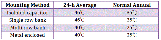 因此,对于这些热量的辐射,应该有足够的安排。电容器组运行时的最大允许环境温度如下表所示。