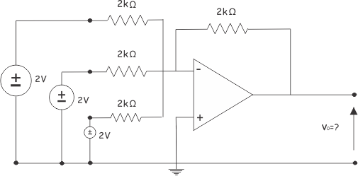 让我们计算输出电压3个输入夏季或求和放大器,电路如下所示,