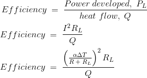 的热电发电机的效率的定义为已开发功率的比值,Pl在加载电阻, Rl到热源的热量Q