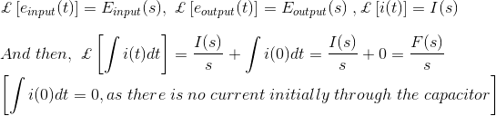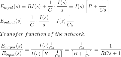 - 最后,我们采用输出的拉普拉斯变换和输入的拉普拉斯变换的比率,这是所需的传递函数。