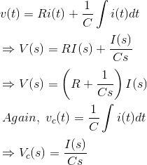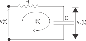 在上图中,施加电压V(t),输出被测量,因为电压出现在横跨电压电容器c是vC(t)。