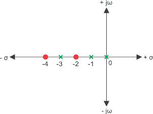 在上面的函数中,如果s = z1,或s = z2,或s = z3.,……s = zN,传递函数的值变为零。这些Z.1, z2, z3.z,……N,是分子多项式的根。至于这些根部分子多项式,传递函数变为零,这些根部称为转移函数的零。