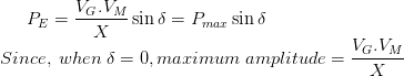 在这里,为了理解,我们考虑了同步发电机突然用增加量的电磁负荷施加的情况,这导致通过制作p不稳定E.小于p.S.随着转子经历减速。现在给出将机器带回稳定条件所需的加速功率的增加量,