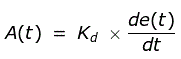 现在,正如名字所暗示的,在一个微分控制器的输出(也称为驱动信号)是直接正比于误差信号的导数。