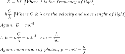 从等式(1)可以得出结论,具有波长λ的电磁波将具有带有动量p的光子。